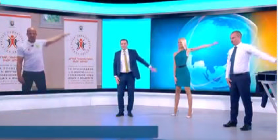 на водещите от сутрешния блок на БтВ Той беше в морския град, за популяризиране на инициативата, тръгнала от Ямбол за утринна гимнастика преди началото на учебните часове.