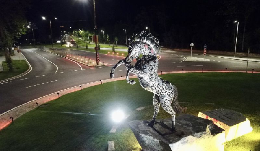Обновяването на кръгово кръстовище в Ямбол завърши с поставянето на метална скулптура на кон