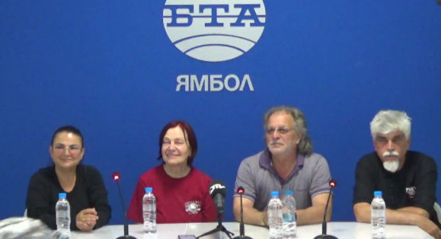 Национален пресклуб на БТА - Ямбол - Йълдъз Ибрахимова - пресконференция: Ямбол (9 юни 2023) в Националния пресклуб на БТА в Ямбол джаз примата Йълдъз Ибрахимова дава пресконференция по повод предстоящия ѝ на 11 юни концерт в града заедно с Камерния оркестър "Дианополис" под диригентската палка на маестро Ганчо Ганчев. На снимката (отляво надясно): концерт-майсторът на Камерен оркестър "Дианополис" Красимира Султанова, Йълдъз Ибрахимова, маестрото Ганчо Ганчев, джаз фотографът Константин Зайков.