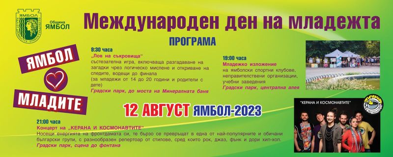 За трета поредна година Община Ямбол организира празнични събития по повод 12 август – Международния ден на младежта, които ще се състоят в Градския парк.