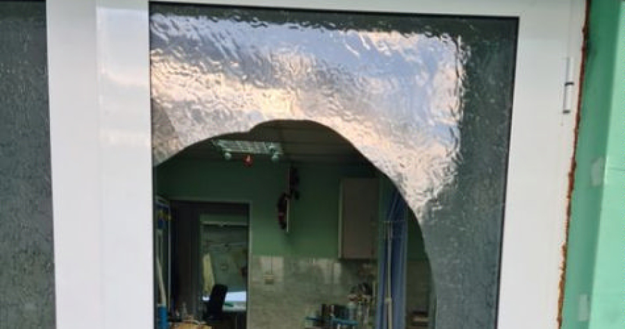 По прозореца са хвърляни тежки предмети около 4:00 часа тази нощ, вероятно камъни.