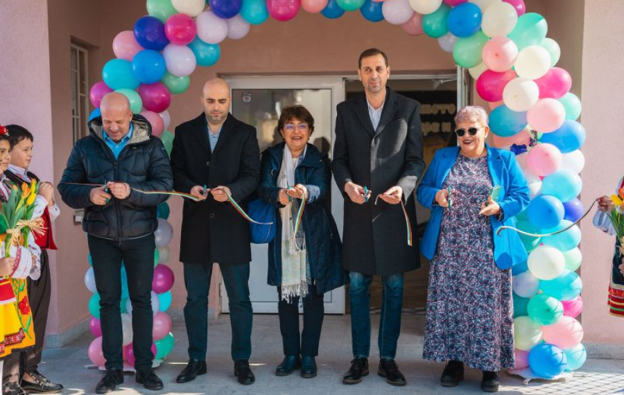 в Обединено училище „Д-р Петър Берон“ в Ямбол. Строително-монтажните дейности са извършени по проект „Разширение на ОбУ „Д-р Петър Берон“, гр. Ямбол - учебна сграда с 5 класни стаи и обслужващи помещения, реконструкция на сграда и обновяване на дворното пространство”. Сред гостите на официалната церемония бяха кметът на Ямбол, Валентин Ревански и неговият заместник Енчо Керязов, заместник областният управител Николай Костадинов и изпълнителят на обекта Красимир Инджов.