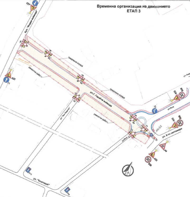 Третият и последен етап предвижда ремонт на уличното платно и тротоарната настилка на ул. „Георги Гарабчи войвода“, както и част от кръстовището с ул. „Русе“.