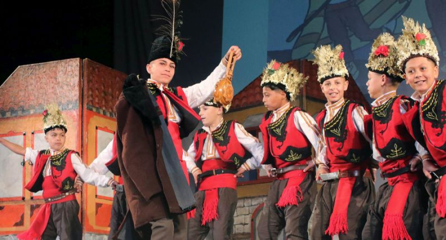 пресъздадоха на сцената в зрителната зала на Общината неповторимия ямболски коледарски буенек.