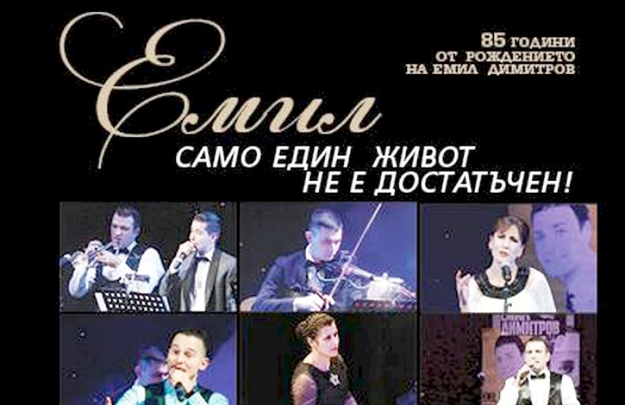 Легендата за краля на българската поп музика – Емил Димитров – ще оживее на сцената на Младежки културен център „Георги Братанов“ в Ямбол. На 5 юни (четвъртък) от 19:00 часа жителите и гостите на града ще могат да преживеят неговата история чрез музикалния спектакъл „Емил – Само един живот не е достатъчен“, режисиран от Николай Априлов. Входът е свободен. Постановката разказва историята на живота и творчеството на Емил Димитров – изпълнителят на вечните класики „Моя страна“, „Арлекино“, „Нашият сигнал“, „Ако си дал“ и много други. Сценарият е написан от Влади Априлов, а песните са с нови аранжименти на композитора Светослав Заров. На сцената ще се изявят талантливи млади изпълнители – Денислав Новев, Велин Михайлов, Пейо Филипов, Олга Михайлова-Динова, Орлин Цветанов и Мая Василева, които ще вдъхнат нов живот на познатите и обичани песни. „Емил беше специален. Всички го познават. Макар вече да не е сред нас, песните му остават – като послания, а не просто музика“, споделя режисьорът Николай Априлов. Песни като „Ако си дал“ се възприемат като социални химни, а „Моя страна, моя България“, някога недопускана до ефира, днес се пее като неофициален химн на българите по света. Не пропускайте тази вълнуваща вечер, в която музиката и духът на Емил Димитров ще оживеят отново на сцената на Младежкия културен център в Ямбол.