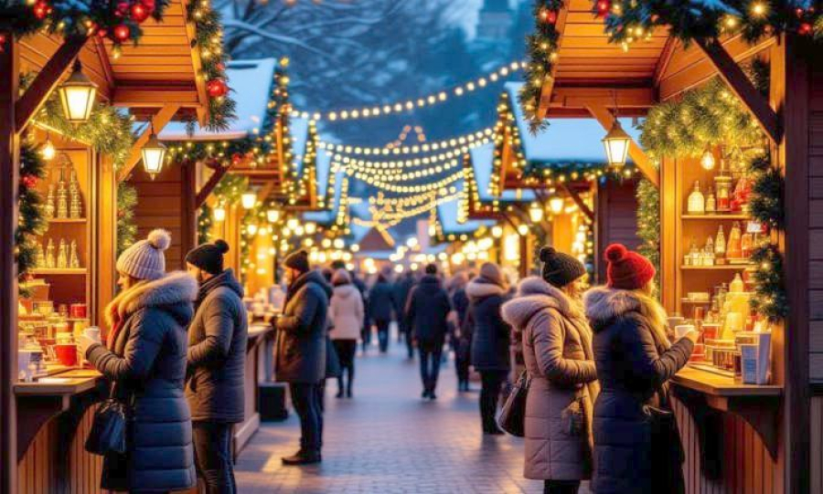 Ето подходяща илюстрация за статията, отразяваща празничната коледна атмосфера и търговския характер на събитието: