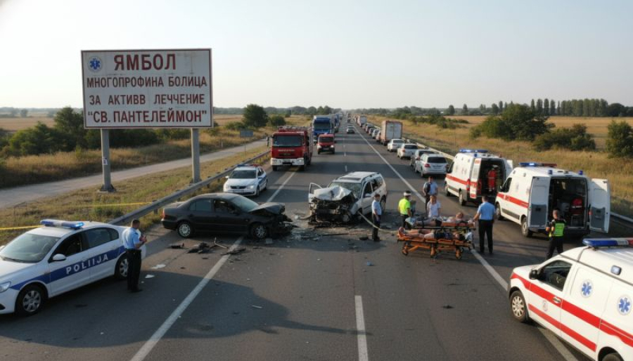 Инцидентът е станал между два леки автомобила в участъка между селата Веселиново и Могила. Временно движението там е ограничено, като трафикът се пренасочва през град Ямбол, съобщиха по-рано от Агенция „Пътна инфраструктура”.