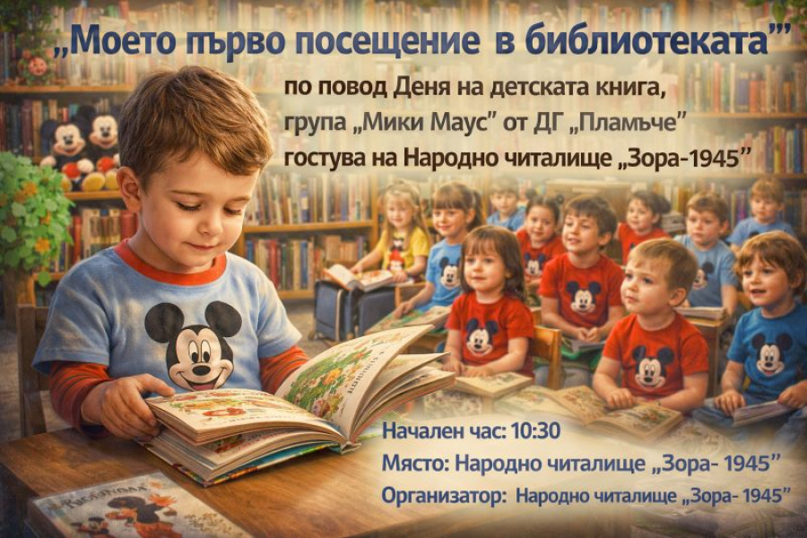по повод Деня на детската книга, група „Мики Маус“ от ДГ „Пламъче“ гостува на Народно читалище „Зора- 1945“