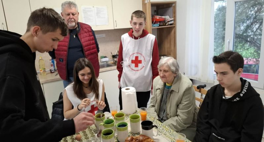Доброволците запознаха настанените лица в центъра с традициите, свързани с празниците за Великден – боядисването на яйца, какво символизира червеното яйце и т.н. След дискусията доброволците и украинците заедно боядисаха яйца за празника, като имаше и състезание за най - красиво яйце.