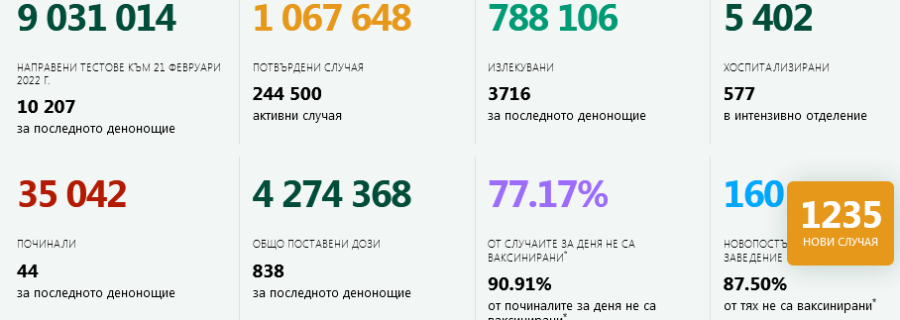 Данните са към 00.00 ч. на новото денонощие.