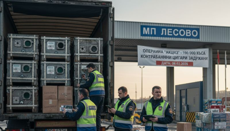 Камионът с чужда регистрация пристига на МП Лесово на 02.02.2026 г. на входящо трасе в страната. Водачът, турски гражданин, е представил документи, че превозва транзитно през България метални изделия от Турция за Германия. След оперативен анализ е извършена щателна митническа проверка, при която инспекторите откриват кашони с контрабандни цигари, укрити между декларираните стоки. Установени са общо 190 000 (9500 кутии) недекларирани цигари от различни търговски марки, с турски акцизен бандерол. Контрабандните тютюневи изделия са иззети. На водача е съставен акт за административно нарушение.