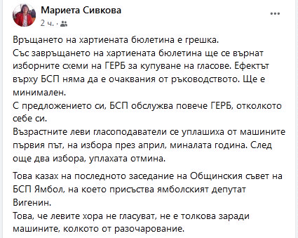 Със завръщането на хартиената бюлетина ще се върнат изборните схеми на ГЕРБ за купуване на гласове. Ефектът върху БСП няма да е очаквания от ръководството. Ще е минимален.