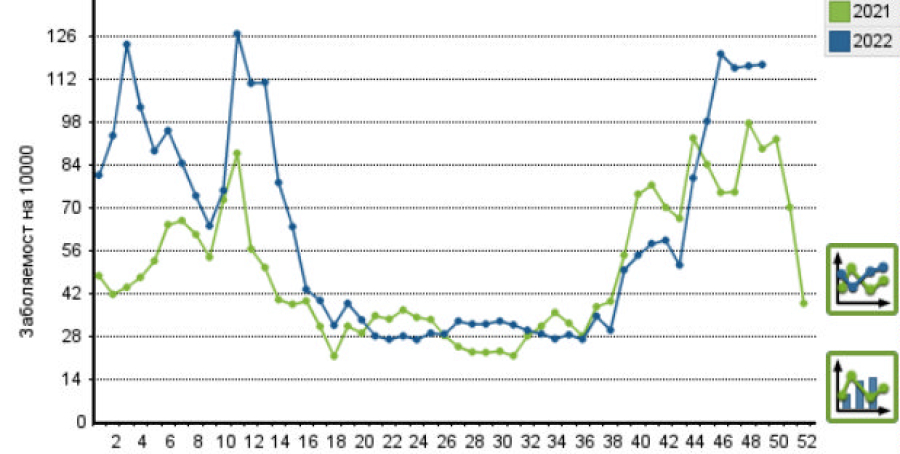 Област Ямбол е на трето място в страната по регистрирани остри респираторни заболявние в страната. През миналата седмица данните на Националния център за заразни и паразитни болести за ЯО сочат 179.53 на десет хиляди. Средното ниво за България е било 116.64. Тенденцията е към повишаване нивото на грипоподобните заболявания в областта. 149.85 на 10 хиляди е било нивото през първата седмица на декември....