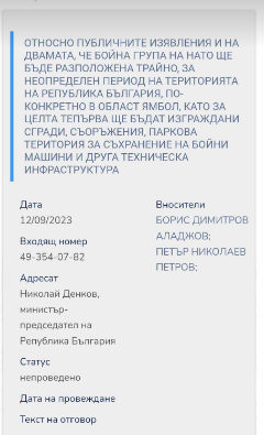 не е сред вносителите от ВЪЗРАЖДАНЕ, които се интересуват и явно притесняват, че край Ямбол ще бъдат разположени чуждестранни НАТО-ски бойни части.