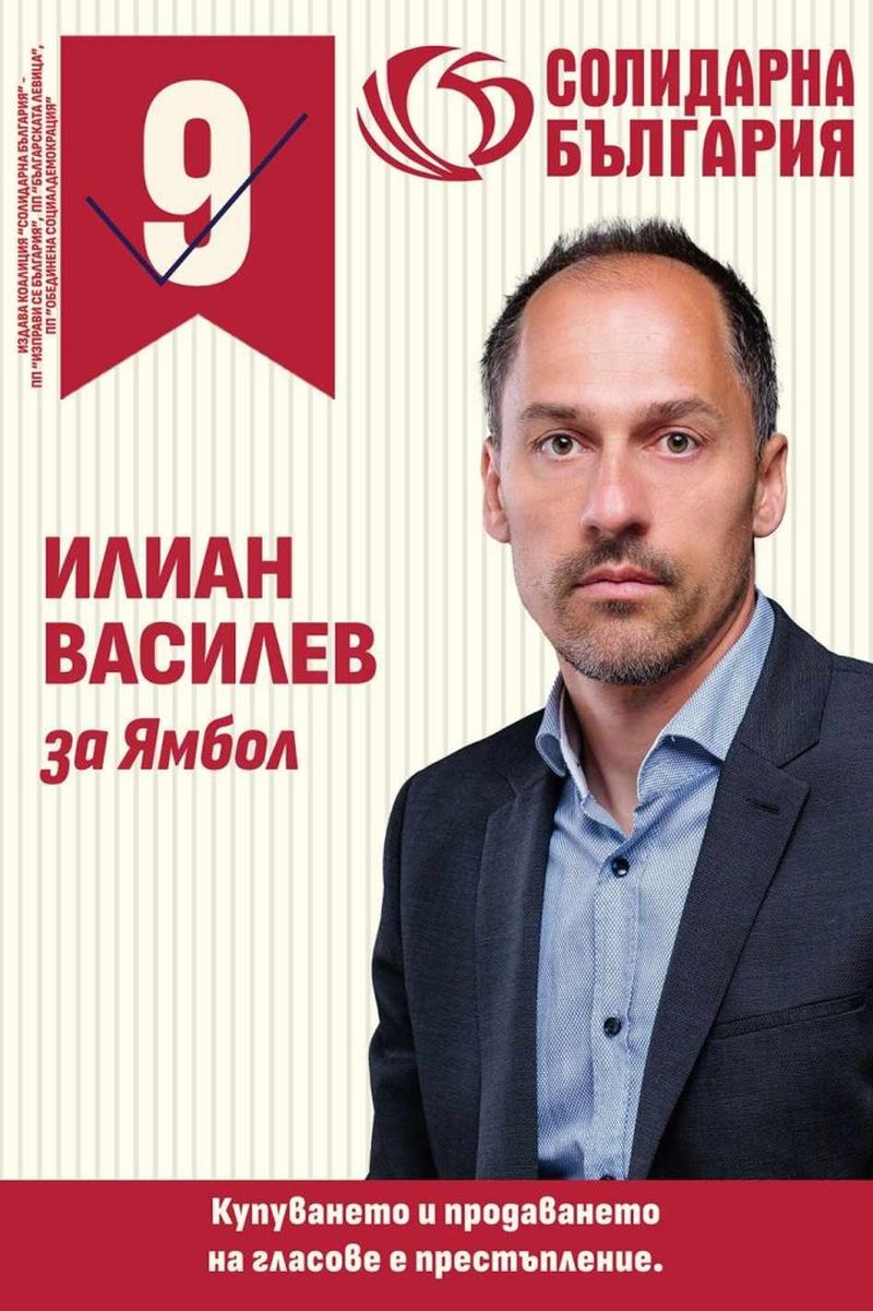 Що се отнася до издигането му като кандидат от „Солидарна България”, той споделя, че е предпочел формацията, защото има каузи, които подкрепя. Сред тях са законодателните инициативи спрямо кредитните фирми, монополите, затварянето на ТЕЦ-овете, продажбата на ток на свободния пазар, строежът на частни болници. Всичко е в нашите ръце, като граждани на тази държава трябва да се интересуваме какво се случва в нея и да се стараем да правим нещата по най-добрия начин. Защото иначе утре децата ни ще избягат навън. Наш дълг е да създадем условия те да останат и да се развиват тук”, категоричен е водачът на „Солидарна България в Ямбол Илиан Василев.