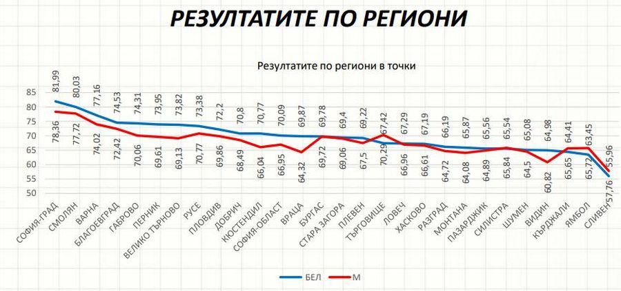 Подреждането е на Министерството на образованието и науката по резултатите от независимото външно оценяване на учениците от 4 клас. Добре, че е Сливен, та не сме последни.
