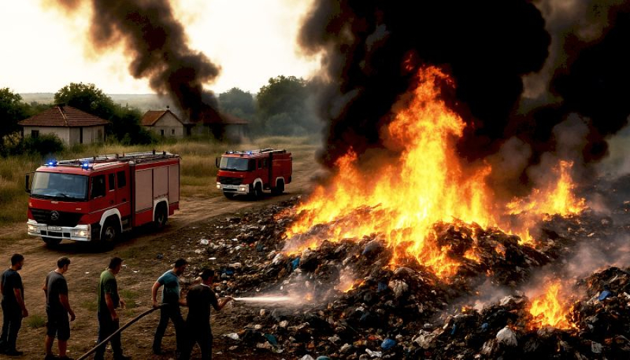 Нерегламентирано сметище гори в покрайнините на село Окоп, близо до Ямбол. Засегнати са два от най-крайните дворове. Вятърът за момента духа в посока обратна на населеното място. На терен са противопожарни автомобили и доброволци от селото.