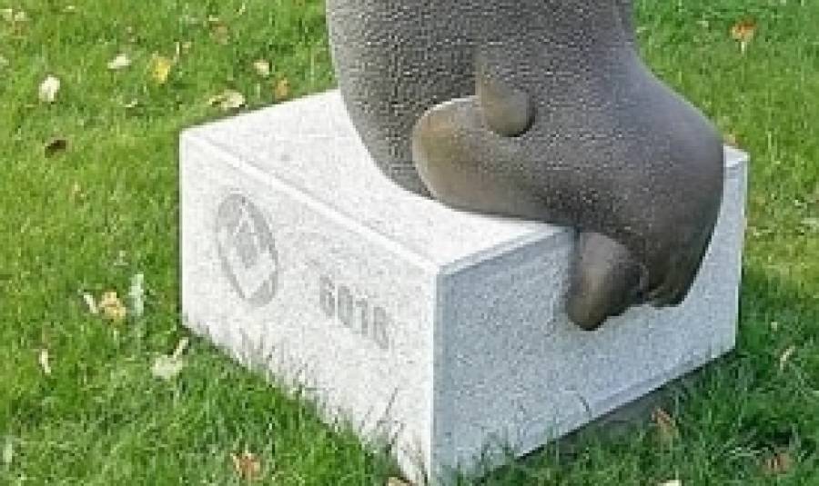 и гражданите му монумент, монтиран в зелената площ срещу библиотеката мина-