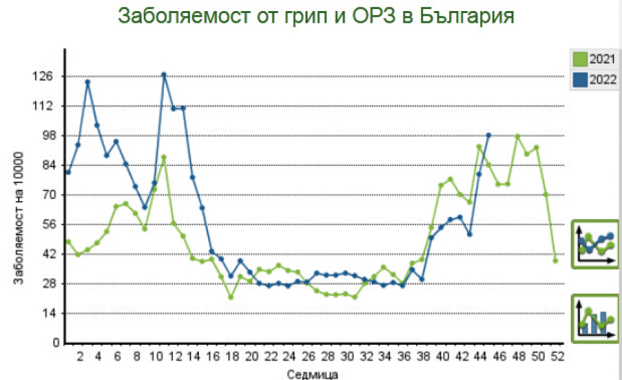 от грипоподобни заболявания в област Ямбол. 117.21, спрямо 98.02 на десет хиляди души.