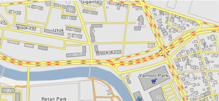 „Георги Дражев " /мост за к в. Каргон до Ловен дом/, през кръстовища при Биков мост и мост при Ритейл парк Ямб ол, кръстовище с ул. ,,Срем", под мост на ул. ,,Граф Игнатиев " до кръстовище с ул. ,,Търговска" на Булевард „ Крайречен" .
