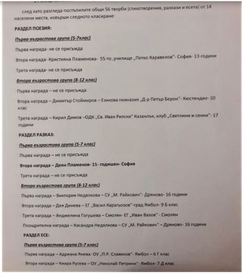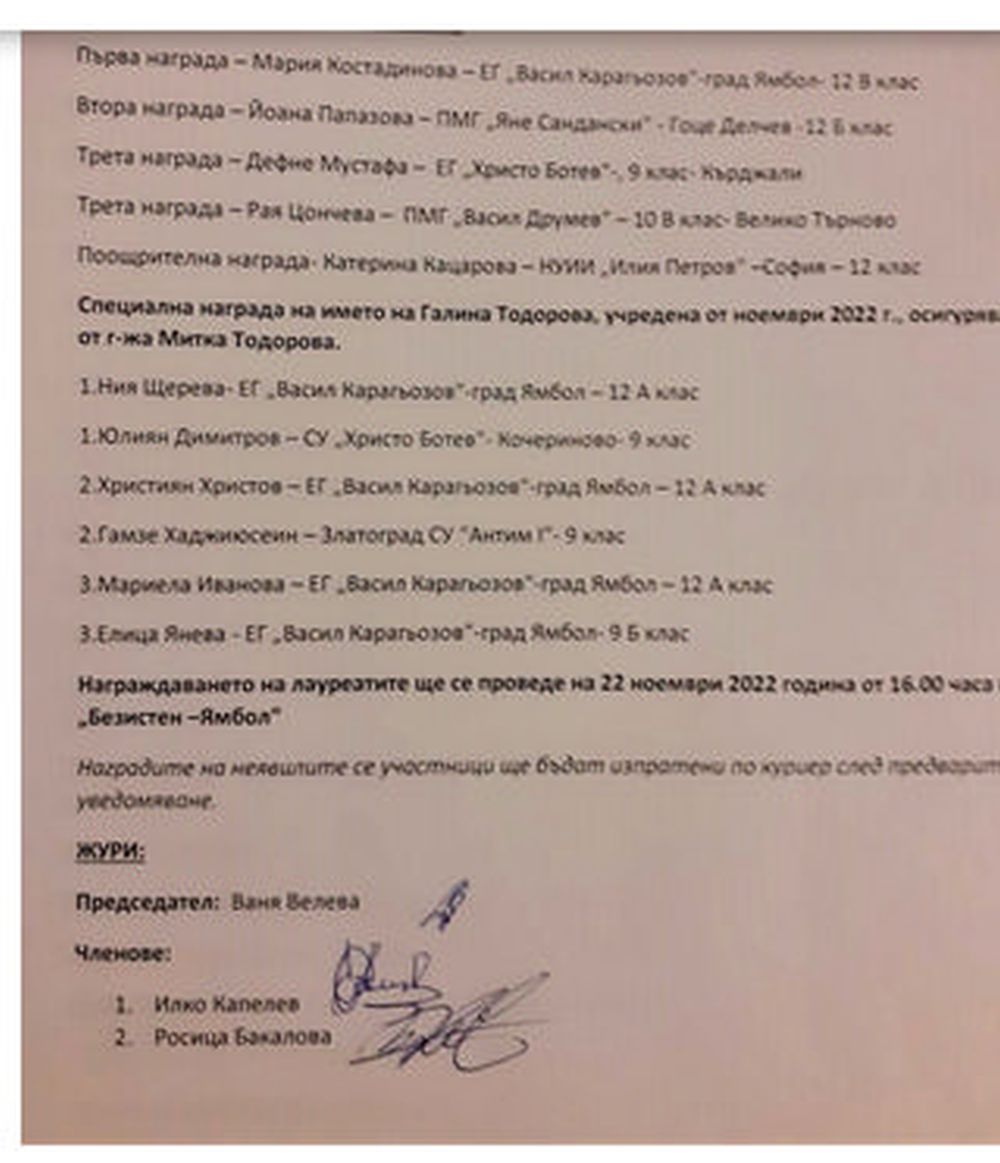 които получеха наградите си в Безистена вчерасн. БТА