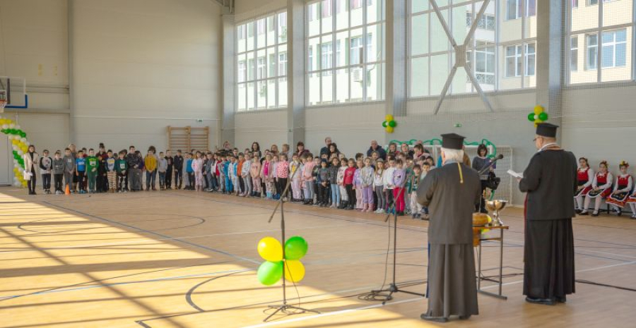 Изцяло нов физкултурен салон радва вече учениците от Начално училище „Професор Петър Нойков“ в гр. Ямбол. Лентата днес беше официално прерязана от кмета Валентин Ревански и директора на учебното заведение Димитър Димитров. Преди това залата беше тържествено осветена от енорийския свещеник отец Стоян и отец Иван.