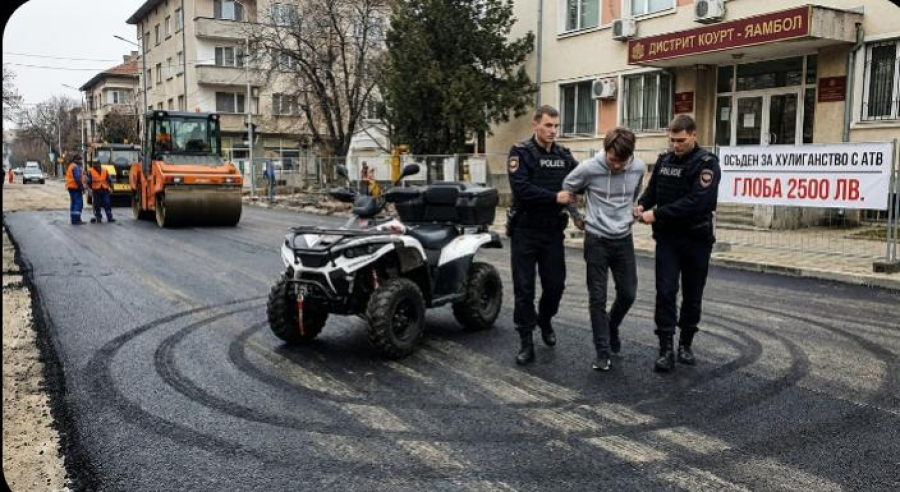 Дори намесата на служител от „Общинска полиция“ не усмирила нарушителя. Преди да напусне мястото, той демонстративно „въртял гуми“ върху новата настилка, нанасяйки допълнителни щети на пътното платно.